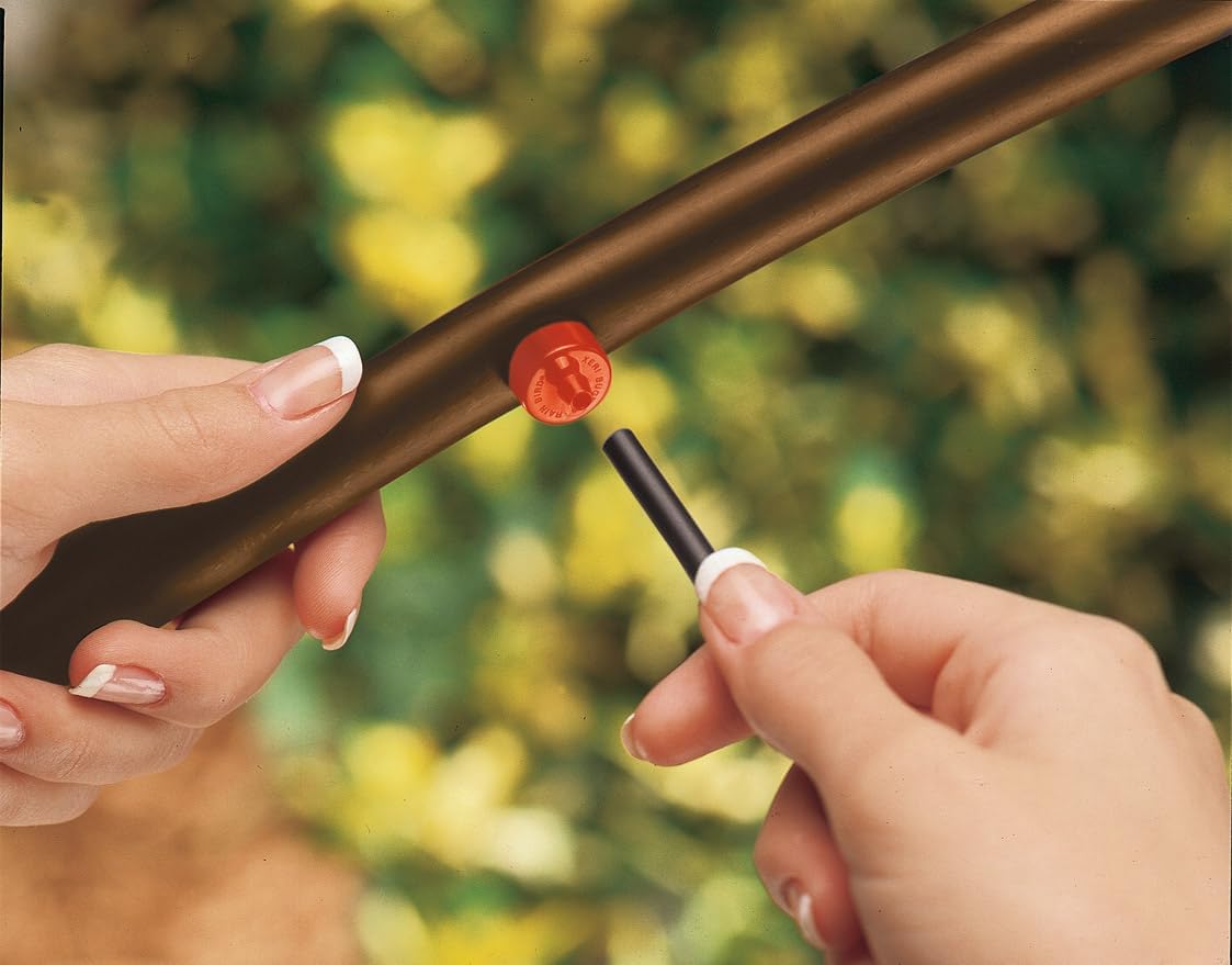 Simply pierce the chosen tubing with the self-piercing tip and push to secure. Use 1/4″ supply line for individual plants or insert directly into 1/2″ or larger main tubing for wider coverage. Detailed steps are included in the product bag and at the Rain Bird official guide.