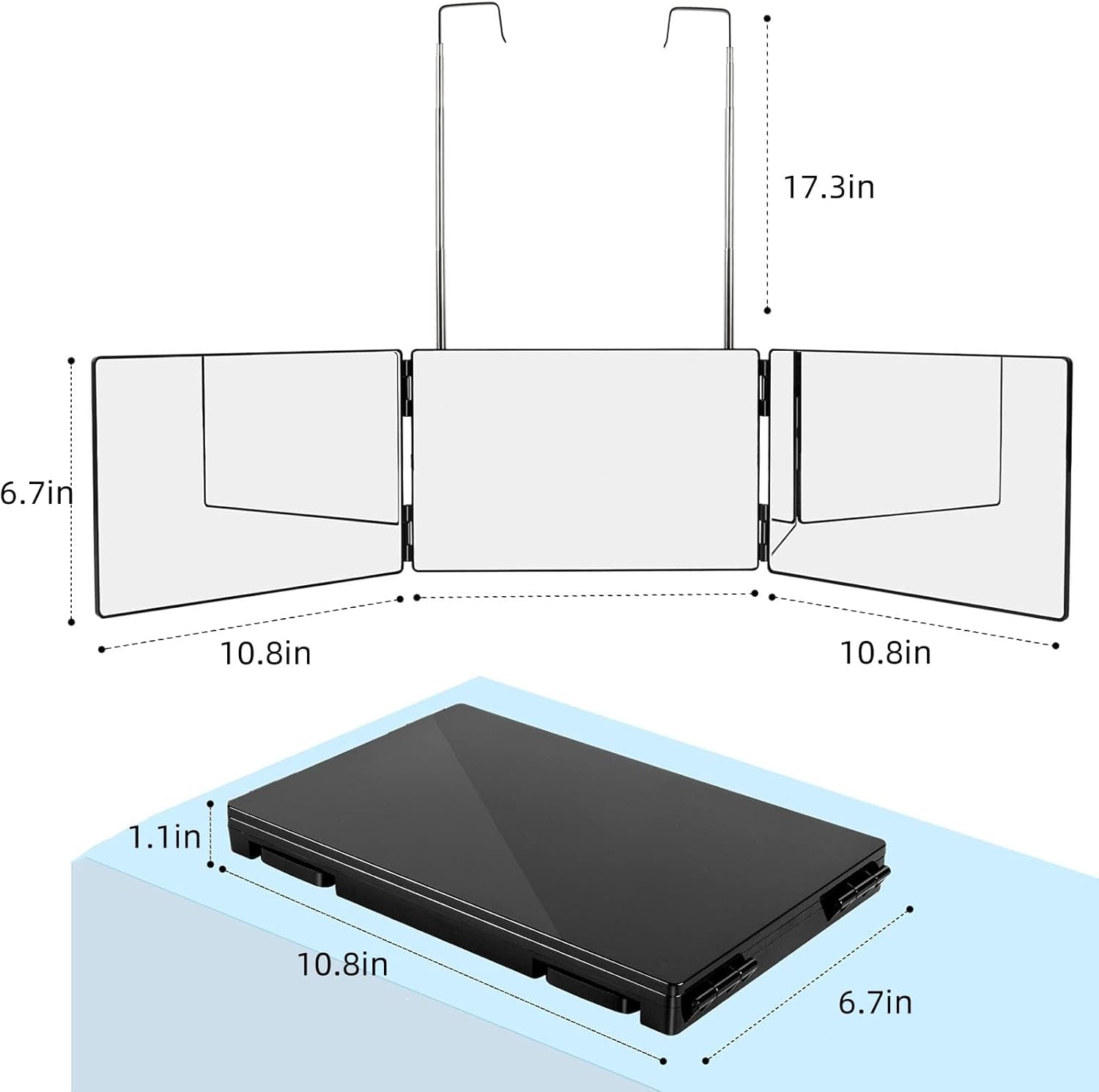 This tri fold mirror system gives you a true 360 degree mirror experience for a clear look at every angle. With adjustable hooks for reliable hanging in your bathroom or closet, even complex back of head mirror checks become a breeze.