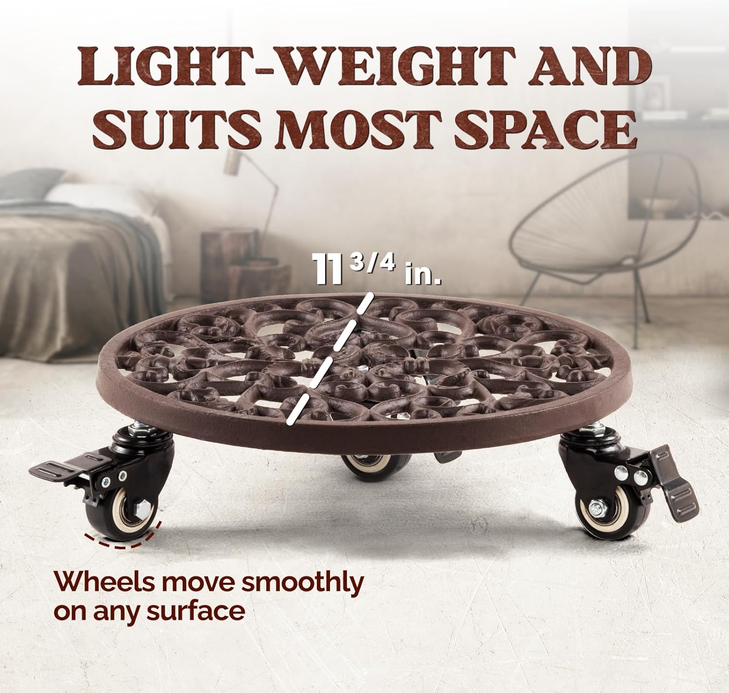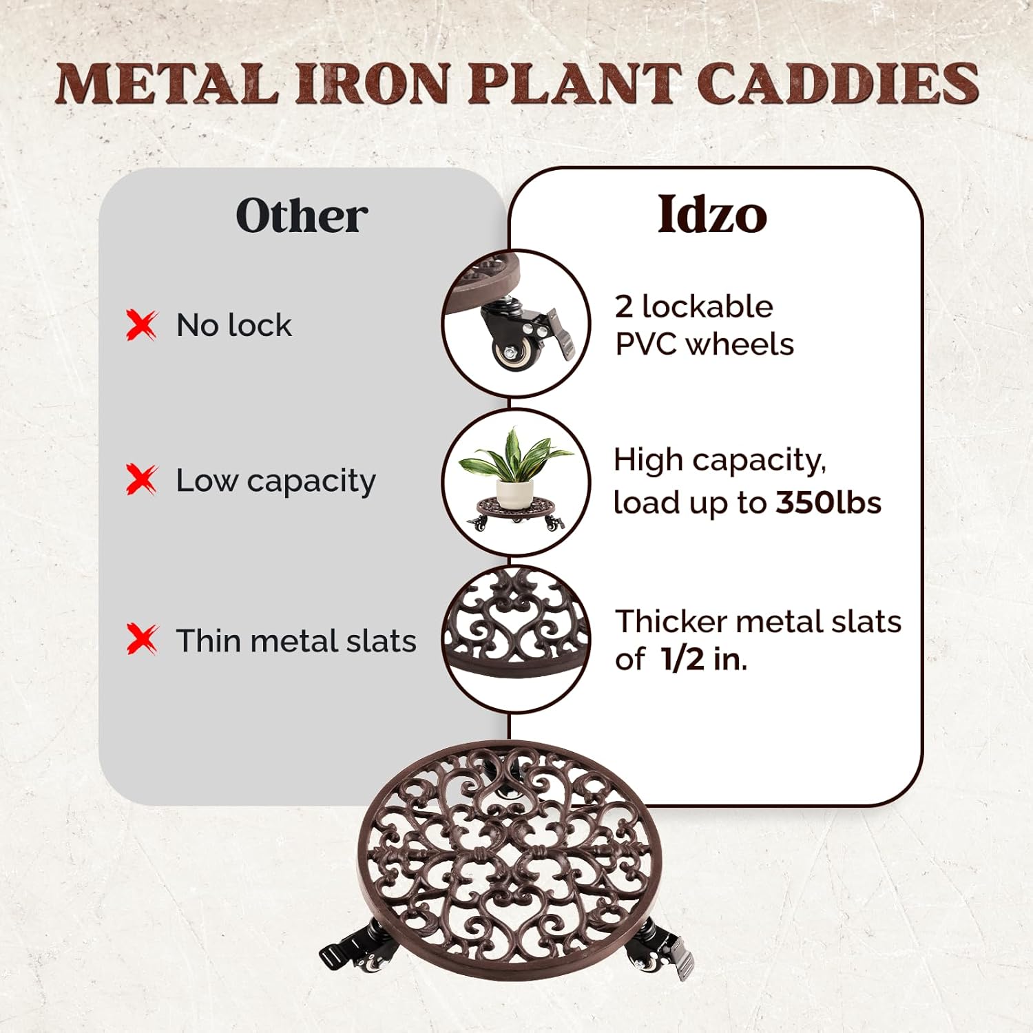 The Idzo Capacity 350 lbs Plant Caddy with Wheels from the IDZO Store is a heavy-duty cast iron plant stand designed for effortless mobility and reliable support. Featuring lockable, 360° polyurethane wheels, it makes moving even the heaviest pots (up to 385 lbs) easy on any surface, while its rustproof, stylish coating ensures durability indoors or out. Perfect for optimizing your living space and keeping plants healthy, this caddy brings both functionality and Scandinavian-inspired style to your gardening setup.