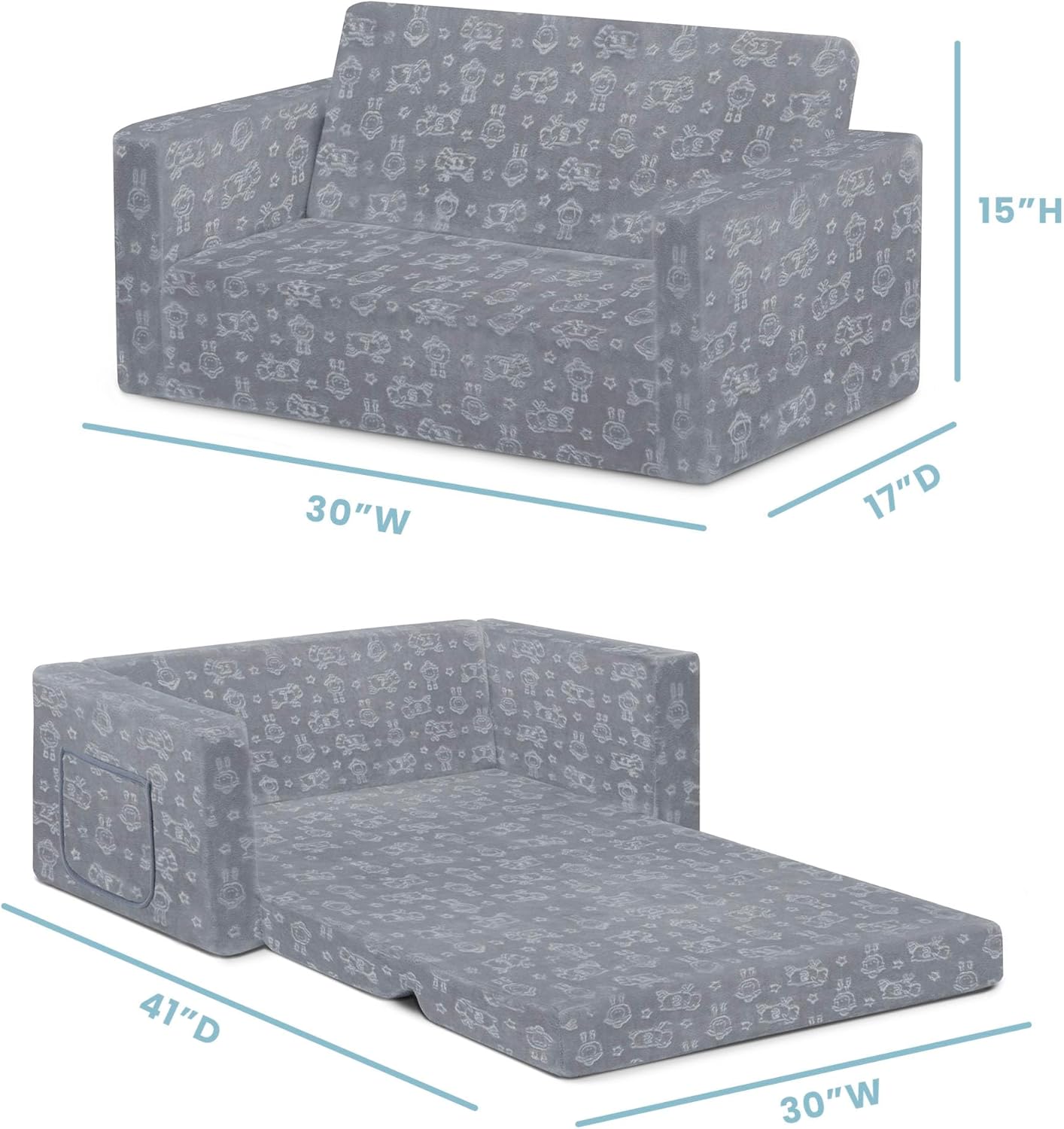 With its ability to transition seamlessly from a flip open couch to a roomy sleeper, this model supports every activity your child loves—from reading to imaginative play. Delta Children has designed this couch with active kids in mind, creating a blend of practicality and fun.