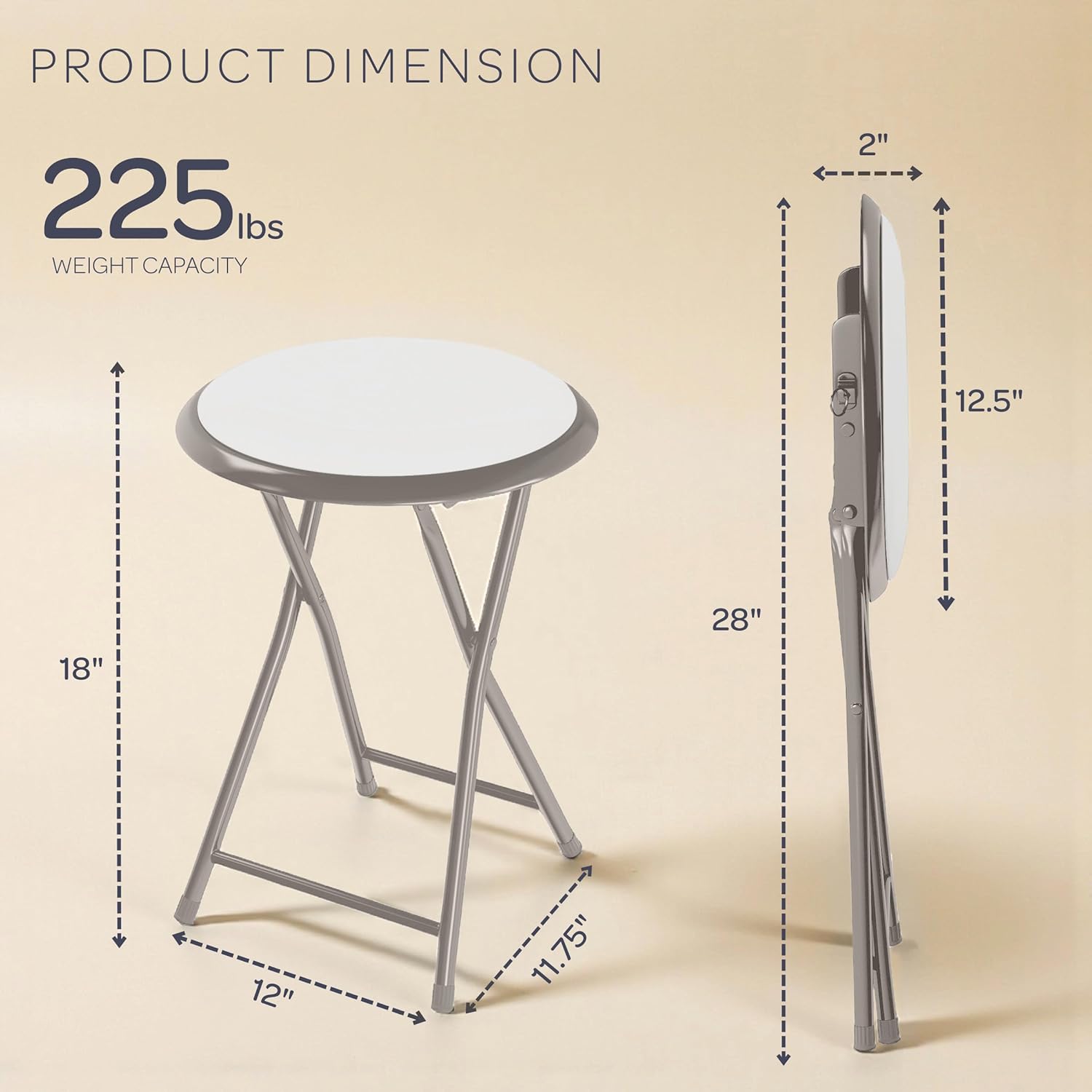 - Heavy Duty Frame: Engineered with 1mm steel tubing, this space saving stool can support up to 225 lbs – more robust than many other compact seating options.