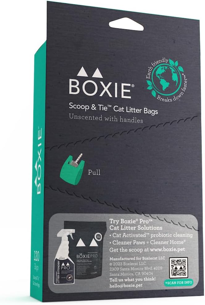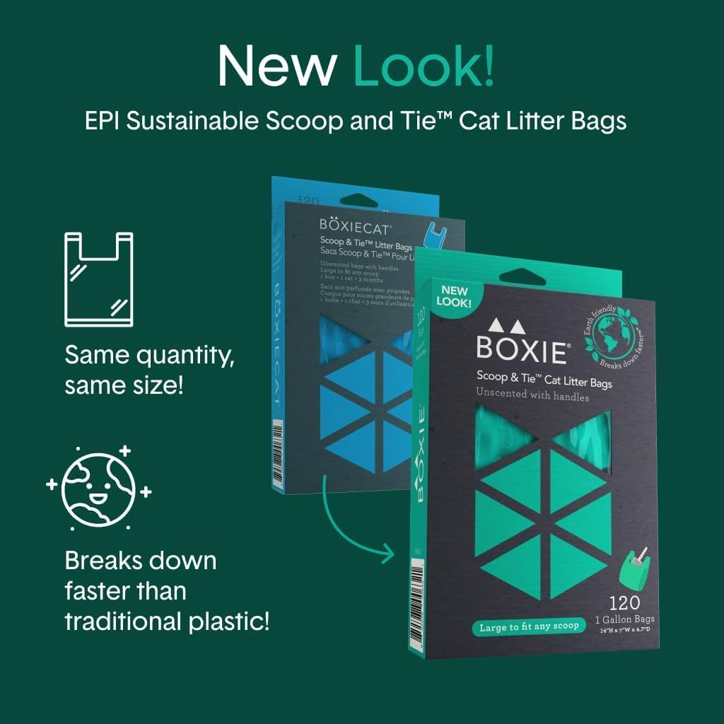 Make pet waste cleanup effortless and eco-friendly with Boxiecat's Boxie Sustainable Scoop & Tie Pet Waste Bags. These durable, leak-proof bags feature easy-to-tie handles for quick, odor-free disposal and are perfect for both cat litter and dog waste. Made with EPI technology, they break down faster than regular plastic bags, helping you manage waste responsibly. Keep your home fresh and clean while choosing a sustainable option for your pets.
