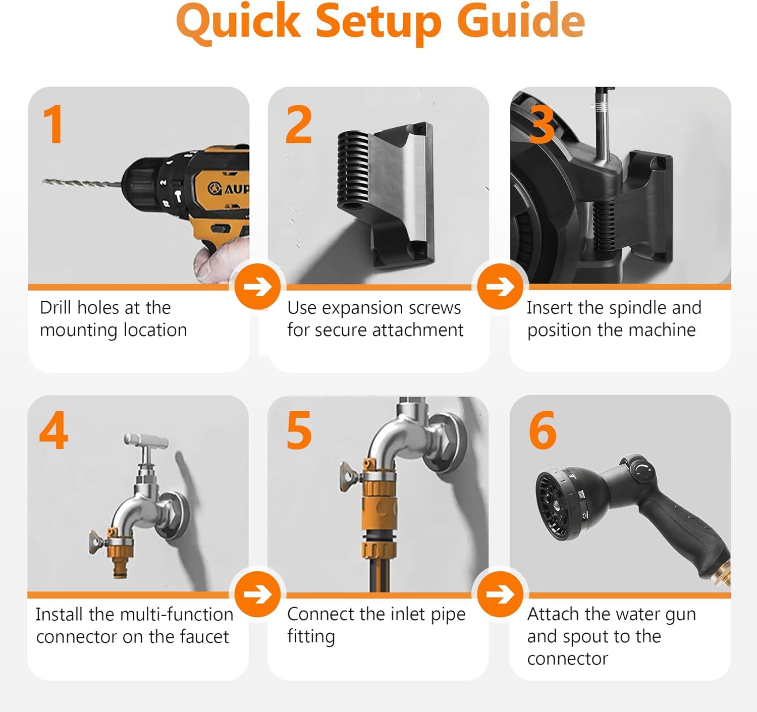 - Choose the wall spot: I pick a surface near the spigot with enough clearance to swing and pull the hose in multiple directions.